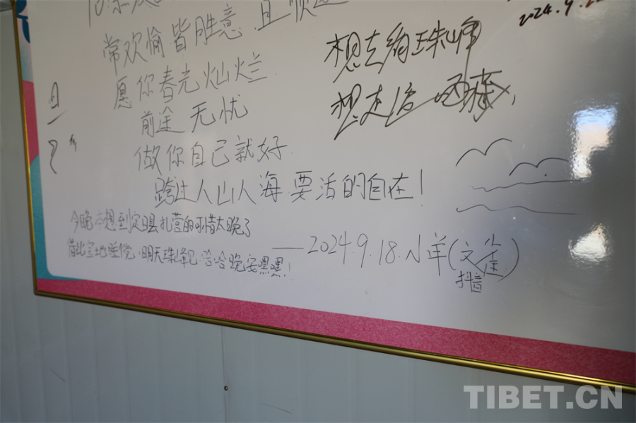 这样的“红色驿站”在日喀则还有很多。除了设置在旅游点方便服务更多旅游者群体,我们在318、219等国省道沿线上,很多人烟稀少处见到了不少这样的红色小房子,24小时向过往游客免费开放。有的是休息的床和椅子,有的是免费的药物、雨衣,还有供人观看的杂志画册……无言地传递着温暖。很多都设有留言墙,收集游客的意见和心愿。