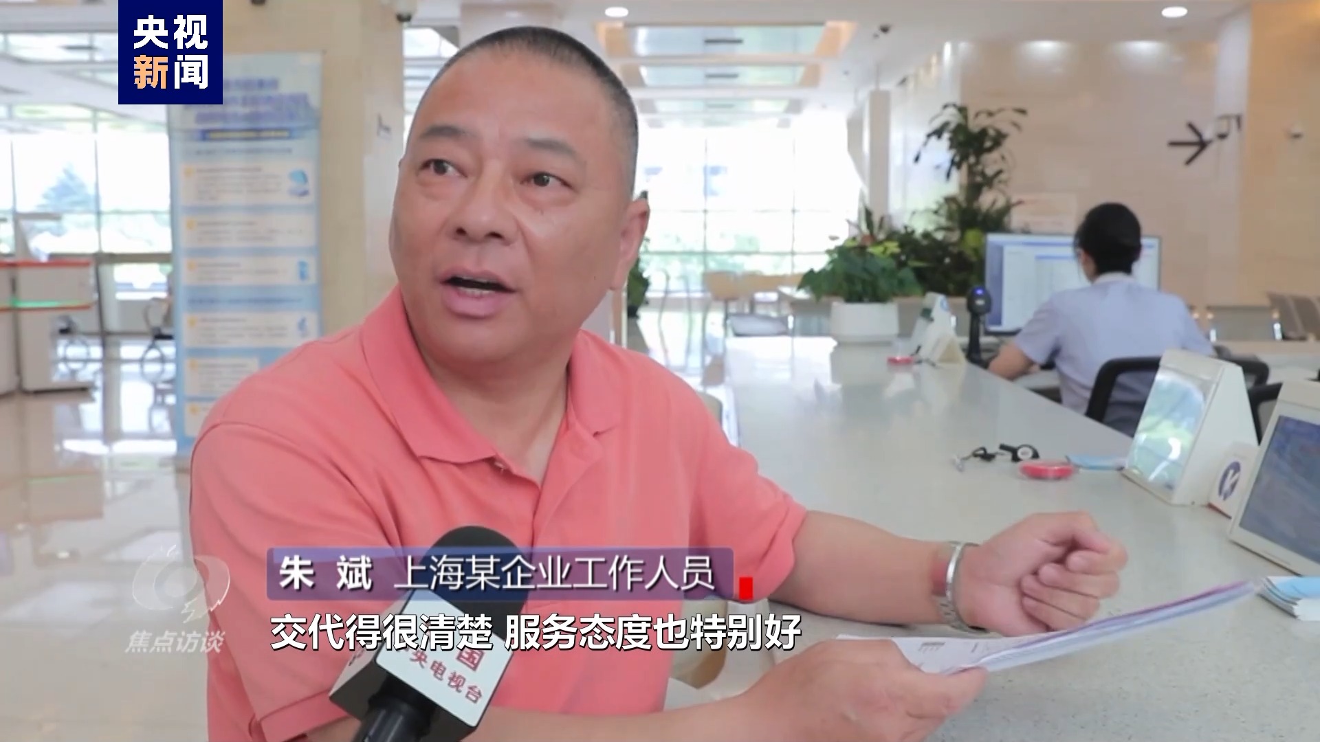 上海某企业工作人员 朱斌:对我们企业来办事、来办证交代得很清楚,服务态度也特别好。