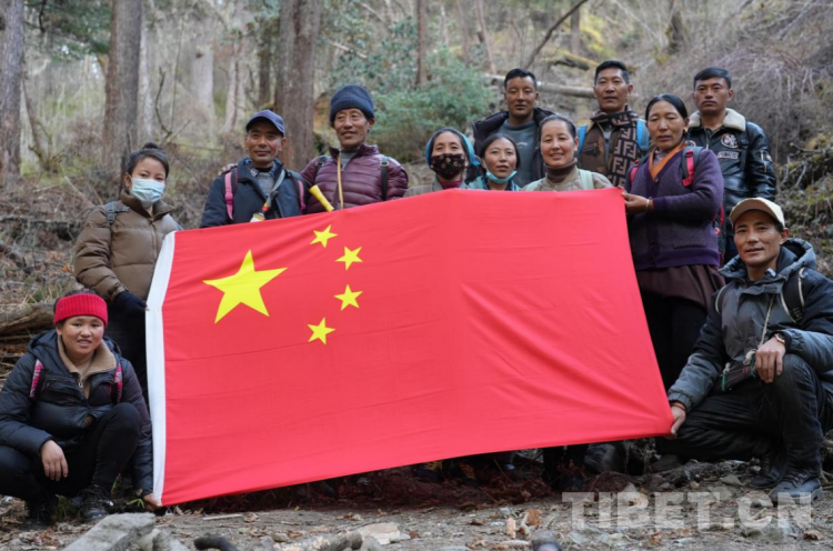 图为玉麦乡巡边群众巡边路上展示国旗 摄影:赵振宇