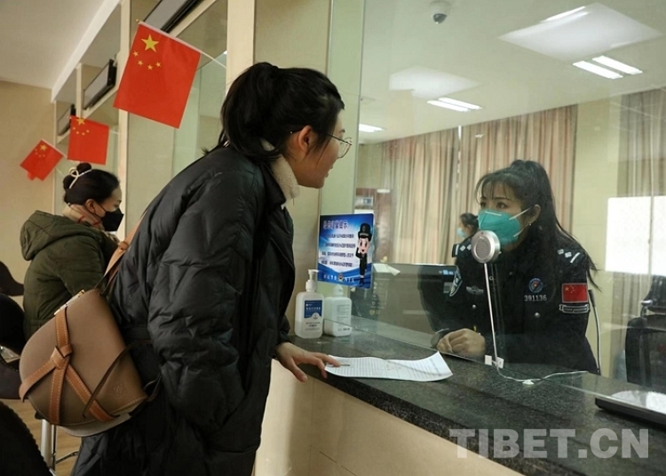 图为藏历新年期间民警为游客群众办理边境通行证 摄影:徐锡万