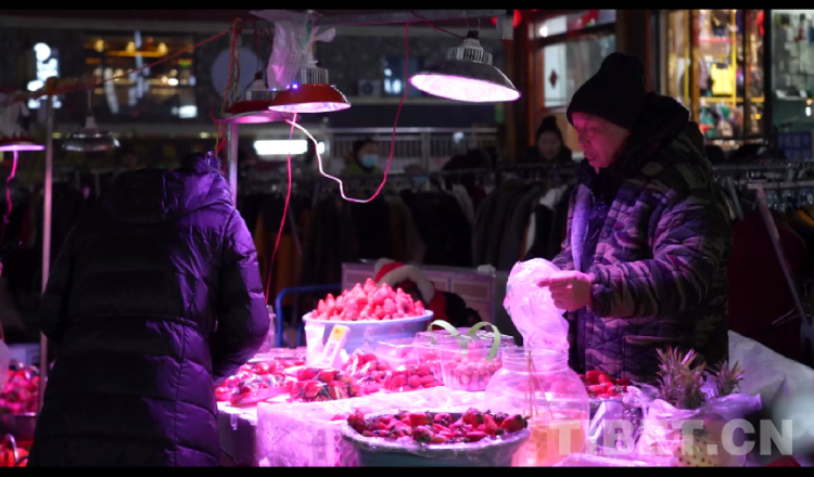 晚上7点,茶马广场周围灯火辉煌,整个夜市包含美食、购物、休闲、娱乐等多元夜间消费方式。民族服饰、炭火烧烤、鲜花水果、套圈游戏,休闲娱乐应有尽有,每个摊位前都人头攒动,整个夜市影音交错、热闹非凡。摊主刘燕高兴地说:“我们昌都的夜生活比较丰富,像我们的套圈生意也比较好,一般都会摆到晚上11点过后,现在昌都的人流量也挺大的,人气比较旺。”