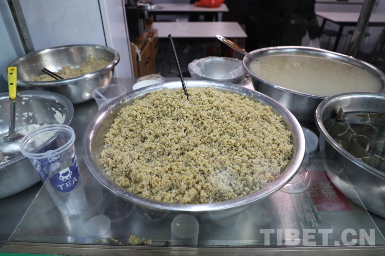 图为商家用来做青稞甜酪的青稞 摄影:龙真多吉