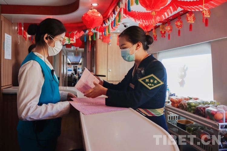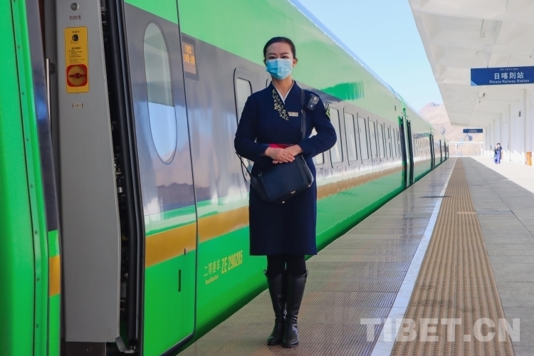 在拉日铁路上的每一列高原动车组列车中,1名列车长,3名乘务员,要负责9节车厢,755名乘客的乘务工作。从上车查验车票、行李安全摆放、列车禁烟宣传,到途中协助乘客补票、提醒乘客到站信息等,列车乘务员们几乎没有时间休息。