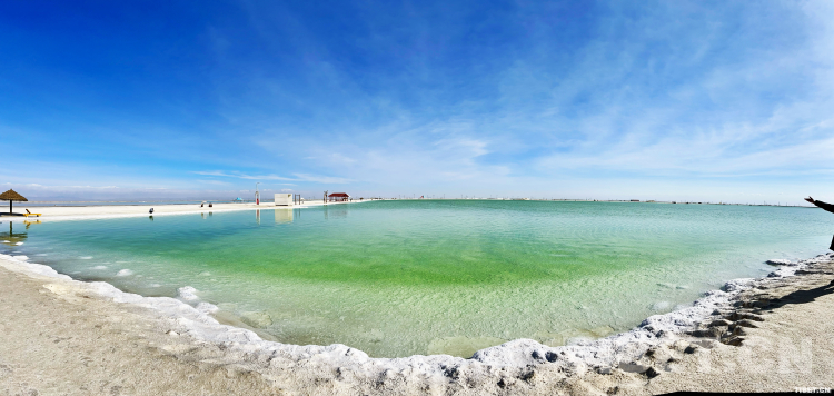 察尔汗盐湖碧绿色的湖水。李一凡 摄