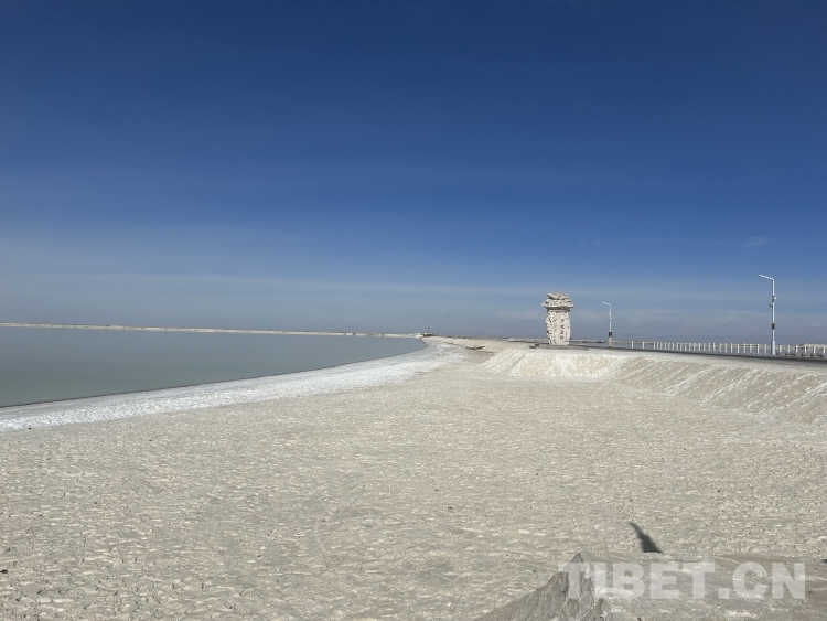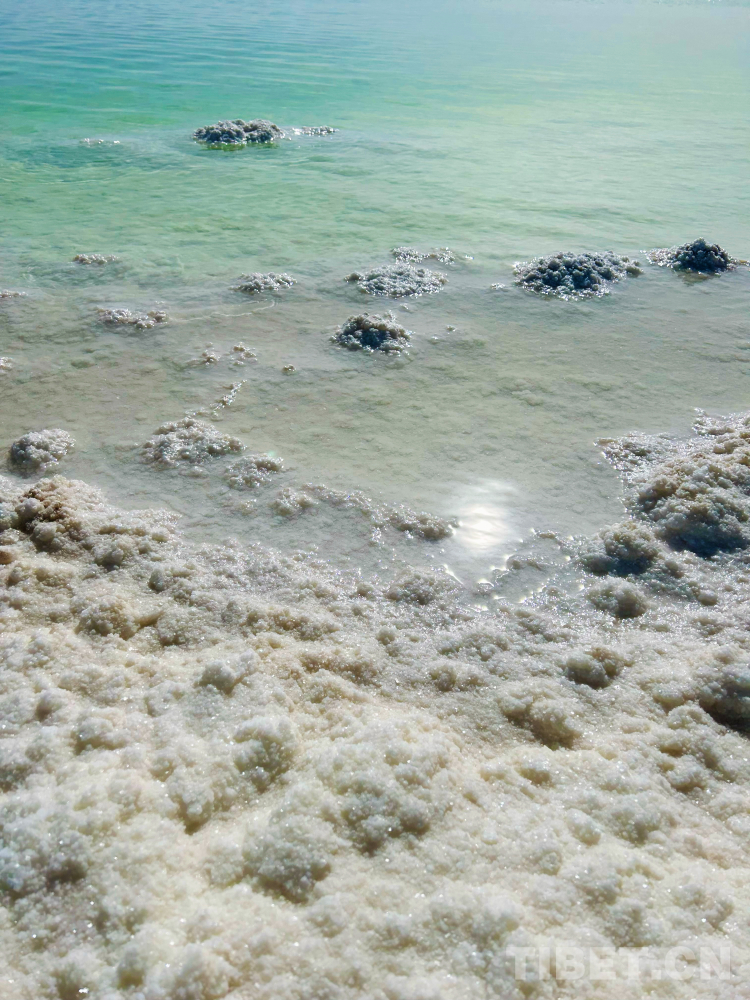 这里是盐的天堂。湖水是高浓度的卤水,蕴藏着极其丰富的氯化钠、氯化钾、氯化镁等无机盐。厚度近20米的坚硬盐盖构成天然的盐桥,旁无护栏,下无桥墩,更无流水。我们的汽车疾驰而过,毫无颠簸之感。湖岸边有大量析出的盐晶,形成厚实的白色盐滩,在高原阳光的直射下发出晃眼的白光。(中国西藏网 文/李一凡 龙真多吉 张萌萌)