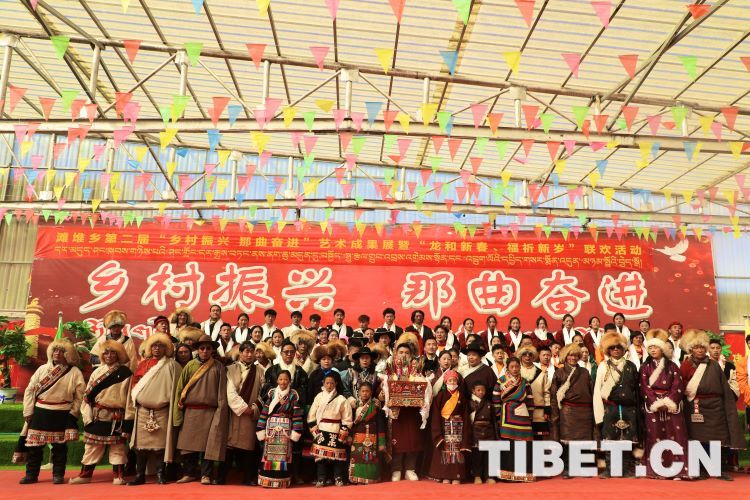 中国西藏网讯 2月10日,中国西藏信息中心“新春走基层”青藏线采访组一行,来到西藏自治区那曲市安多县滩堆乡,适逢当地在举办滩堆乡第二届“乡村振兴 那曲奋进”艺术成果展暨“龙和新春、福祈新岁”联欢活动。采访组一行来到乡政府对面的滩堆乡文化站,记者在现场看到许多穿着具有当地民族特色服饰的人在此聚集。在好奇心的驱使下,经询问当地干部才知道,为喜迎2024春节和藏历新年,感激党和国家的关心关怀,歌颂如今来之不易的幸福生活,乡村文艺队特此精心准备了文艺节目,以崭新的面貌和昂扬的精神展现新时代牧民群众的精神风貌和幸福生活。