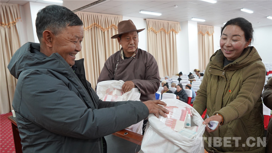 中国西藏网讯 2月11日,在西藏自治区山南市泽当街道办事处滴新社区居民委员会会议室里,一片人声鼎沸、热火朝天的景象,2024年滴新集体产业利润分红暨民工工资兑现仪式正在这里举行。