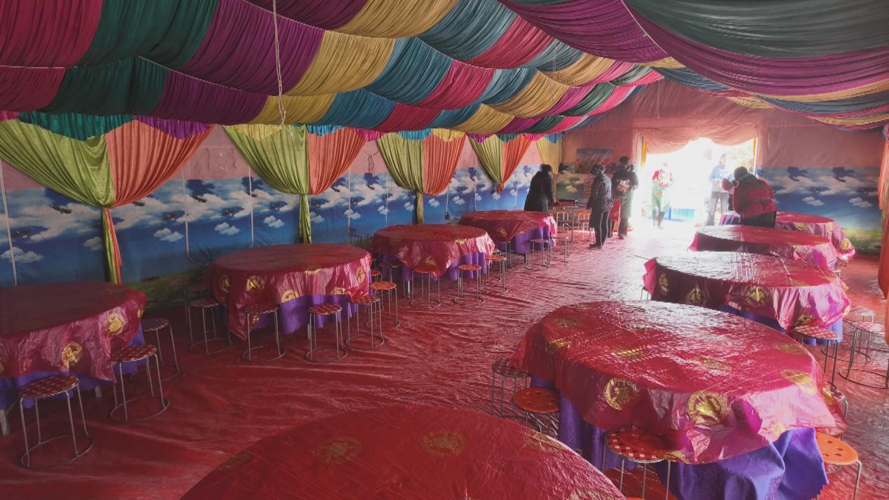 两个小时后,导航准确地把他们带到了许沟村六组的村组活动场。第二天的宴席就在这儿办。水泥地面平整开阔,旁边有一个搭建好的、可以提供电源的门房,炉火烧得正旺,是办席的好场子。