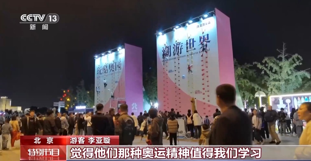 总台记者 王胜东:在北京鸟巢和水立方之间,搭建起了一处攀岩体验区。现场排起了长长的队伍,参与攀岩体验的游客,小朋友占了大多数。