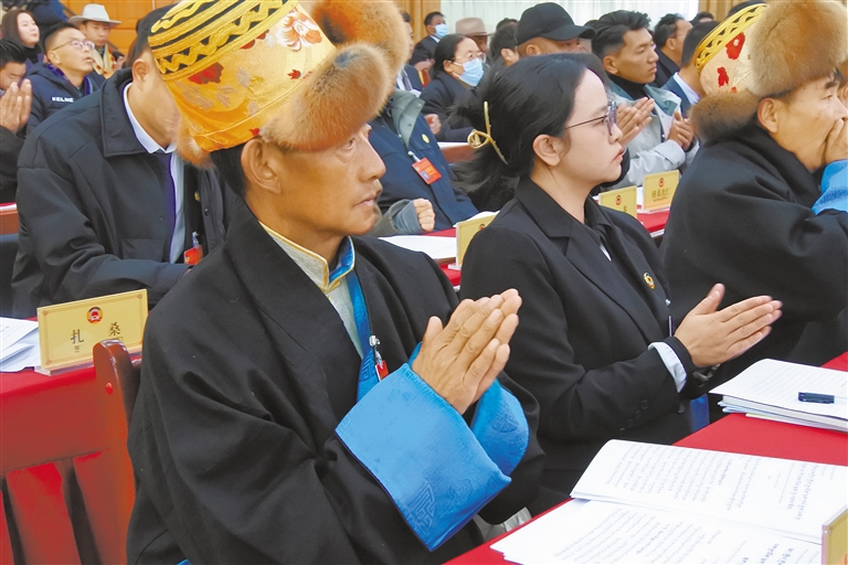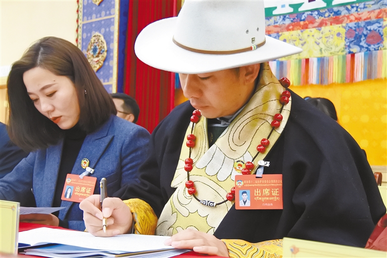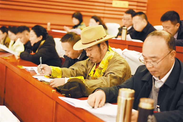 图为基层委员认真聆听政协拉萨市委员会工作报告。