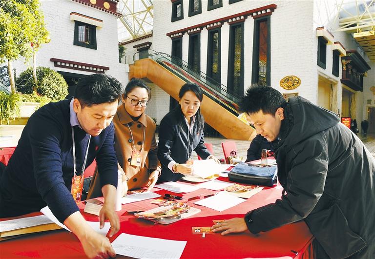 在拉萨圣地天堂洲际大饭店,西藏自治区政协委员报到工作正有条不紊地进行。委员们个个精神饱满、激情满怀地讨论着带来的提案。
