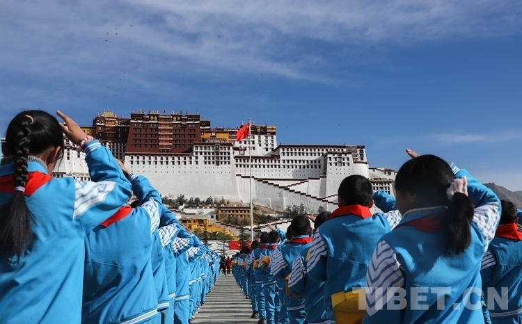 国旗下,拉萨各族各界干部群众衷心祝愿伟大祖国更加繁荣昌盛,祝愿西藏的明天更加美好。