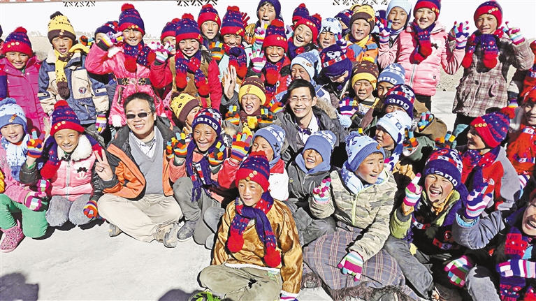 2015年11月21日,拉萨市人民医院北京市“组团式”援藏专家为西藏偏远地区儿童义诊并合影。