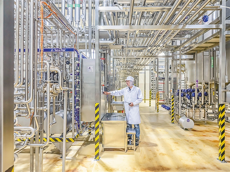 工作人员在北京市援建的西藏净土乳业车间工作。