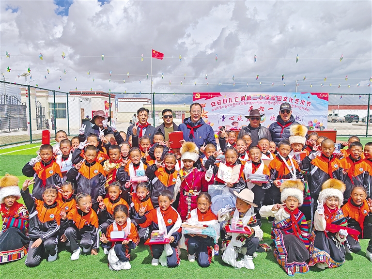 沈阳市第十批援藏工作队员与安多县扎仁镇小学师生一起庆祝六一儿童节。
