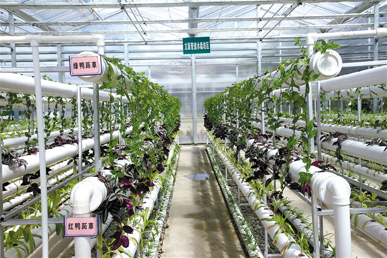 上海援建的江孜县红河谷农业科技示范园区内的立面管道水栽培区。