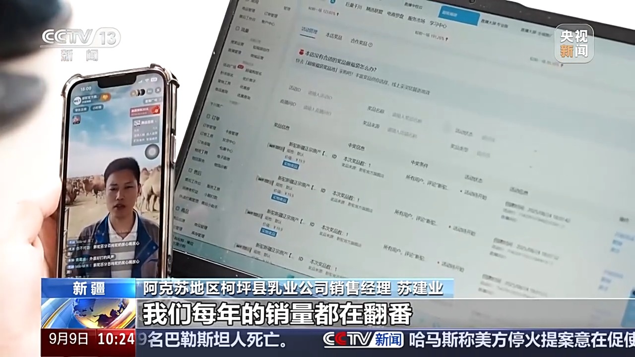 阿克苏地区柯坪县乳业公司销售经理 苏建业:我刚才播了大概有1个小时,已经卖了有4万多元了,我们每年的销量都在翻番。