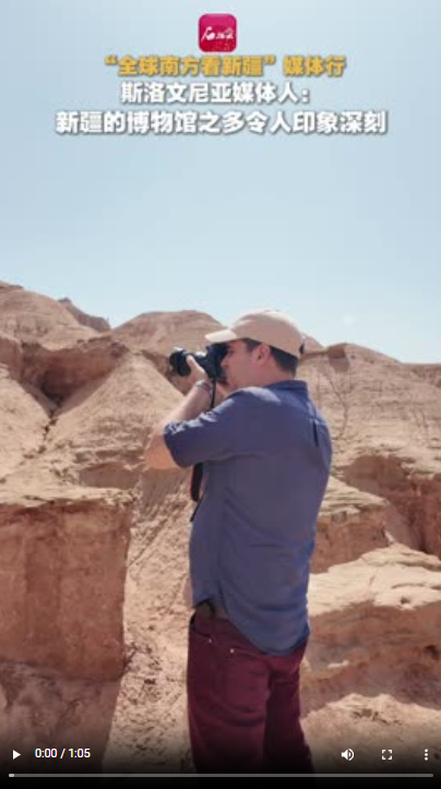 6月19日,“全球南方看新疆”媒体行多国记者来到拜城县,参访了克孜尔红石林景区、克孜尔尕哈烽燧、苏巴什佛寺遗址。斯洛文尼亚《劳动报》专栏记者莫伊察·皮舍克表示,新疆的文物遗产极其丰富,文物保护工作也处于非常高的水平,各类博物馆非常多,强烈推荐大家来新疆看看。