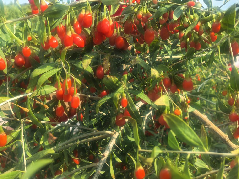 当地企业的锁鲜加工车就停在枸杞田边,刚从枝头采摘的枸杞大果直接进入车中进行锁鲜,避免了传统烘干加工方式所造成的口感和营养损失,24小时后就可直送成都等地的订单商户,个大饱满的枸杞口感鲜甜,可以当作水果直接入口。