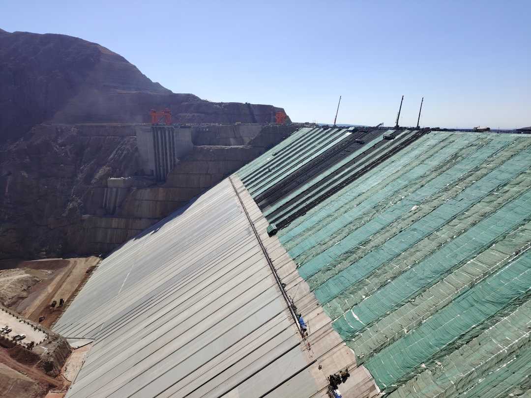 “工程最大坝高247米,创造了混凝土面板砂砾石坝的世界最高纪录,并且大坝提前8个月完成了封顶,9月底就会下闸蓄水,比预计提前了1个月。”中国能建葛洲坝集团大石峡项目公司副总工程师王峰斌介绍。