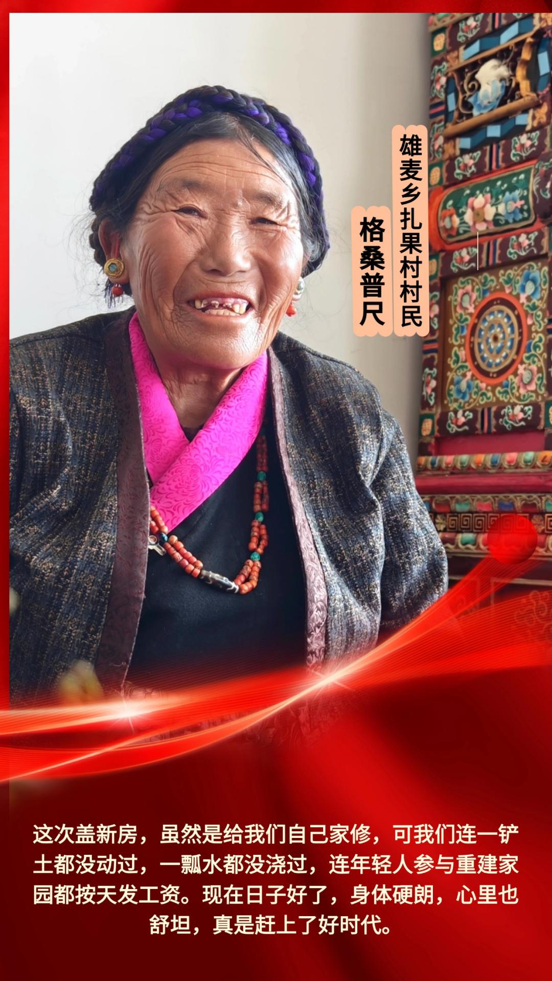 这次盖新房,虽然是给我们自己家修,可我们连一铲土都没动过,一瓢水都没浇过,连年轻人参与重建家园都按天发工资。现在日子好了,身体硬朗,心里也舒坦,真是赶上了好时代。 (中国西藏网 记者/次旦拉姆 德吉卓玛)