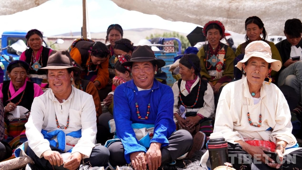 图为扎果村望果节现场,群众面露幸福,目光投向镜头
