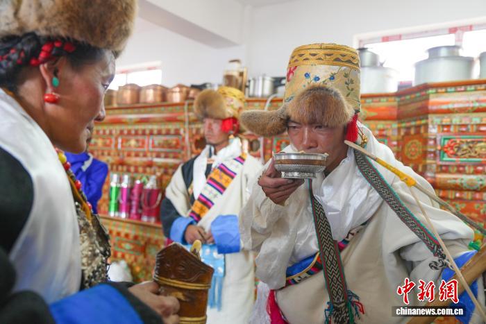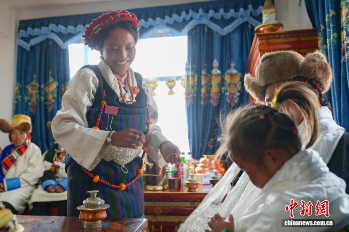 图为定日县加措乡加布村村民庆祝乔迁新居。贡确 摄