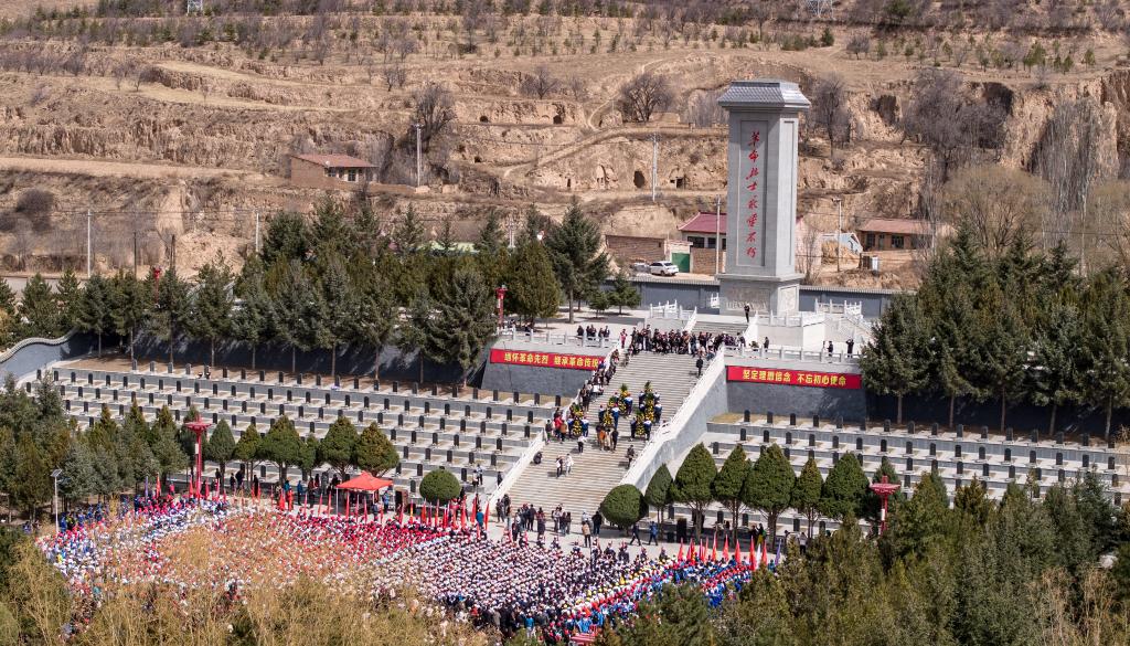 4月3日,参加徒步祭英烈活动的师生抵达位于彭阳县的任山河烈士陵园。