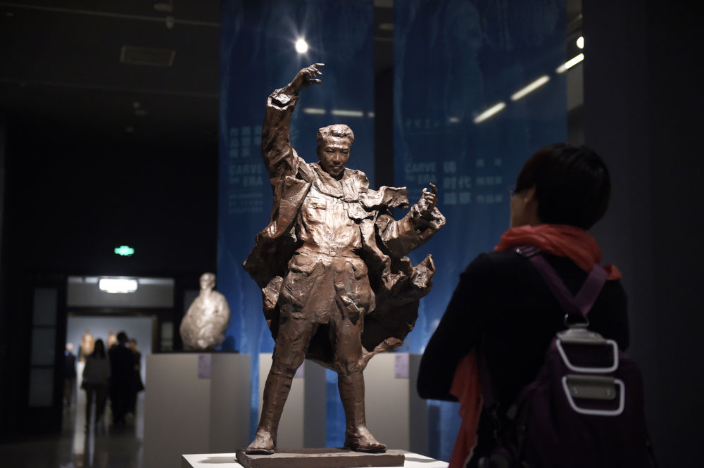 2018年4月1日,参观者在北京的中国美术馆参观雕塑作品“冼星海”。