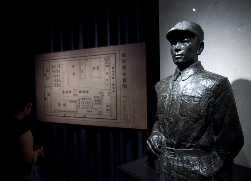 这是在上海四行仓库抗战纪念馆拍摄的谢晋元铜像(2020年8月25日摄)。新华社记者 任珑 摄