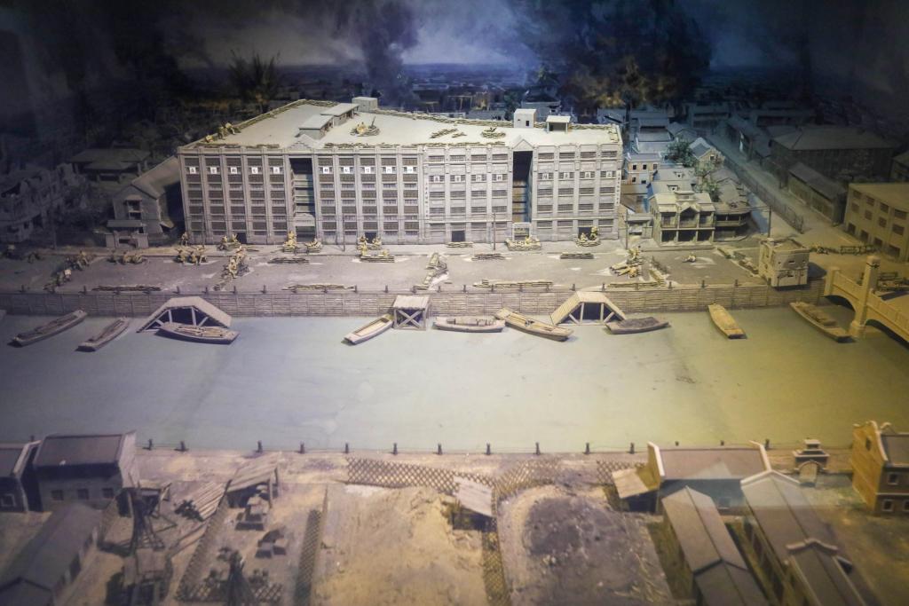 这是在上海四行仓库抗战纪念馆拍摄的还原四行仓库历史场景的模型(2021年9月16日摄)。新华社记者 王翔 摄