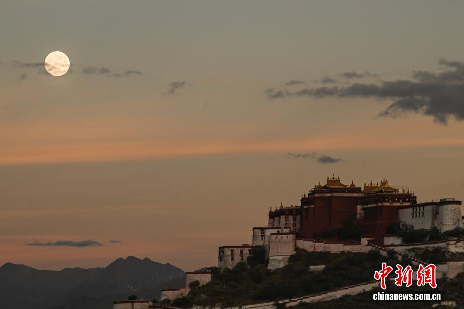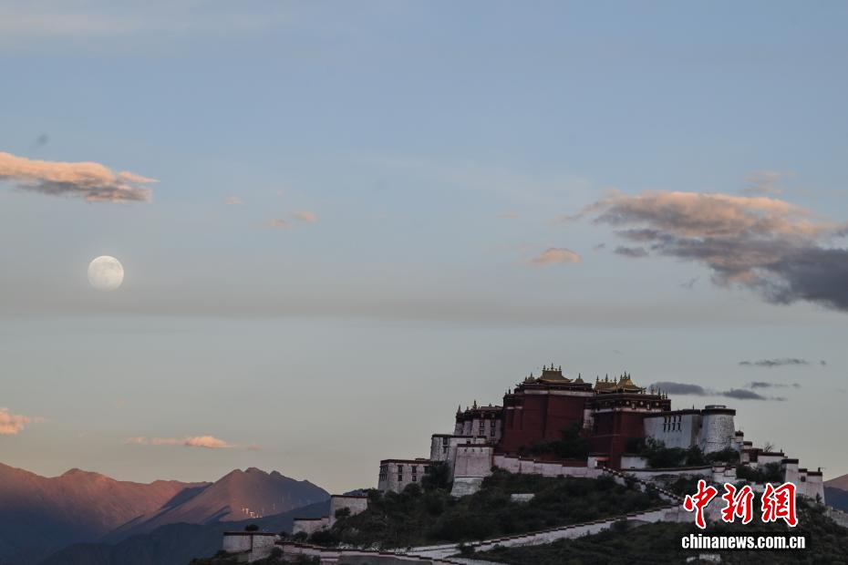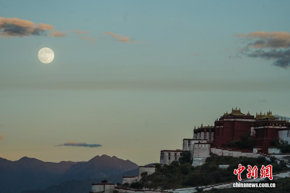 10月6日中秋节,西藏拉萨,布达拉宫与圆月同框。