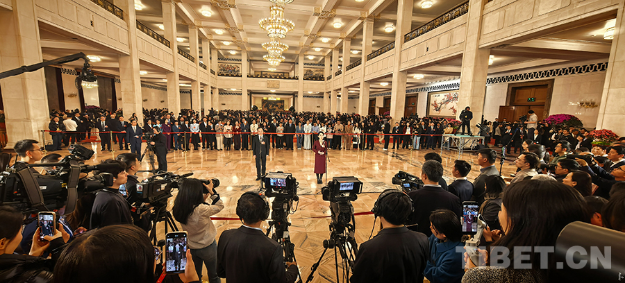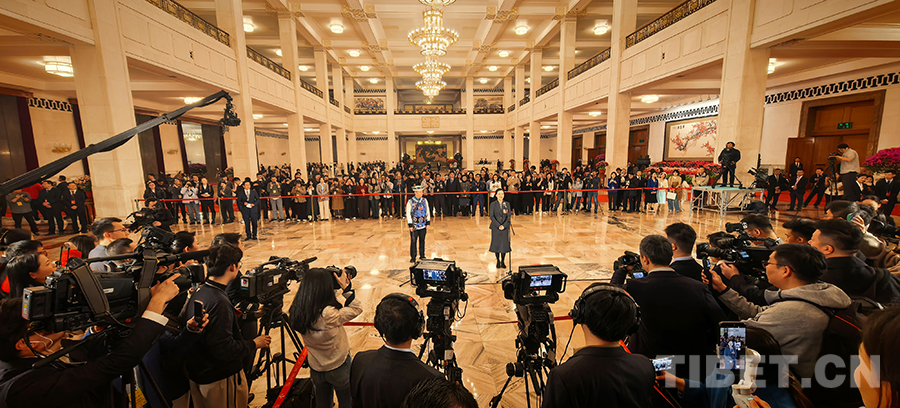 中国西藏网讯 3月12日,第十四届全国人民代表大会第四次会议第三场“代表通道”集中采访活动在人民大会堂举行,邀请6名全国人大代表接受采访。(中国西藏网 记者/刘莉 边子捷 摄影报道)