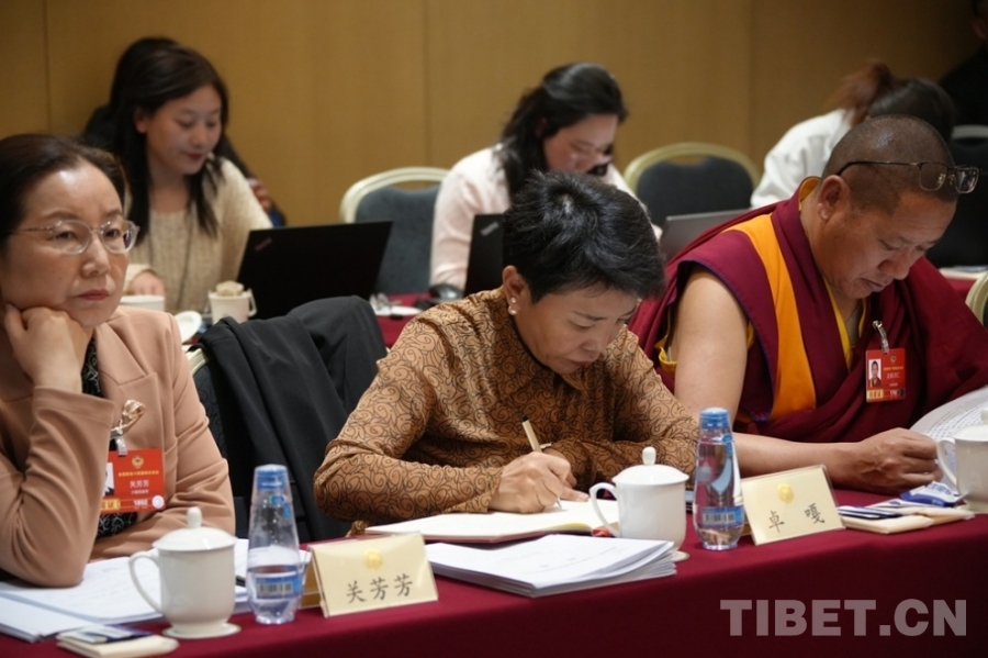 2026两会期间卓嘎(前中)在少数民族界小组会议上 摄影:杨眉笑