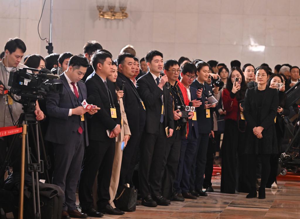 3月5日,第十四届全国人民代表大会第四次会议首场“代表通道”集中采访活动在北京人民大会堂举行。新华社记者 王曦 摄