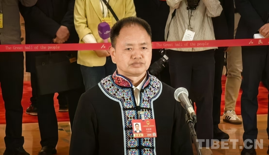 全国人大代表农加贵接受媒体采访 摄影:刘莉