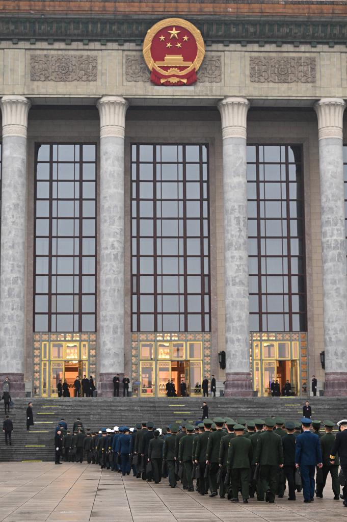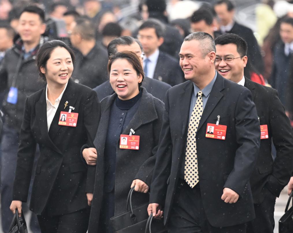 3月5日,十四届全国人大四次会议开幕会即将在北京人民大会堂举行。这是全国人大代表走向会场。新华社记者 曹祎铭 摄