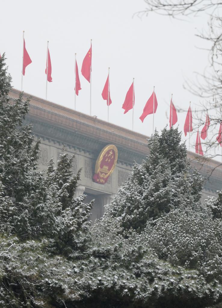 3月5日,十四届全国人大四次会议开幕会即将在北京人民大会堂举行。这是雪中的人民大会堂。新华社记者 李贺 摄