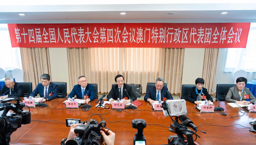 3月7日,十四届全国人大四次会议澳门代表团举行开放团组会议。新华社记者 李明刚 摄