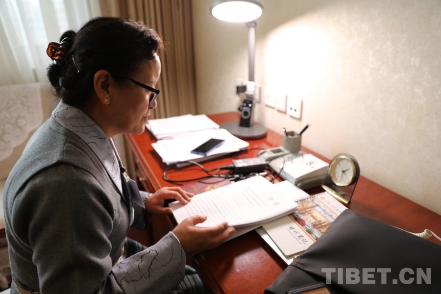 3月5日下午,在代表驻地,全国人大代表、西藏自治区高原生物研究所植物组织培养研究室主任尼珍正在工作。当日上午9时,十四届全国人大四次会议在人民大会堂举行了开幕会。