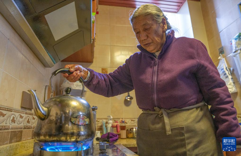 格桑玉珍在家中烧水(4月3日摄)。新华社记者 丁增尼达 摄