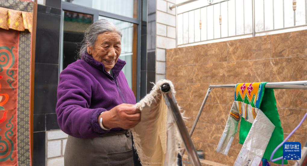 格桑玉珍在家中晾晒衣物(4月3日摄)。新华社记者 丁增尼达 摄