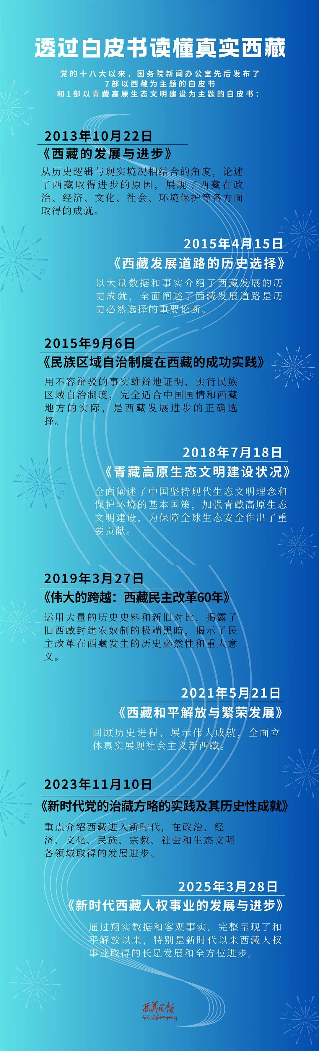 一部部白皮书,全面、立体、真实地展现社会主义新西藏,让全世界都看到雪域高原的沧桑巨变和新时代的日新月异。