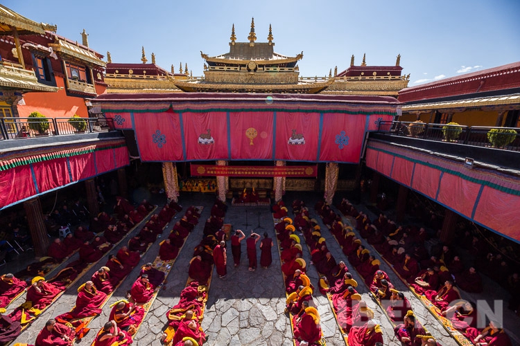 Bei der Prüfung debattierten die teilnehmenden Mönche und die begleitenden Mönche durch heftigen Wortwechsel. Die beiden Seiten zitierten die Klassiker, standen in scharfem Gegensatz zueinander, und stellten sich mal humorvoll und mal ernst dar. Die Leiter der Regierung des Autonomen Gebiets Tibet schenkten den Studien-Mönche, die im Jahr 2019 den akademischen Grad Geshe Lharampa erhielten, bunten Satin, Nüsse, Kesa und Geldgeschenke, um ihnen zu gratulieren.