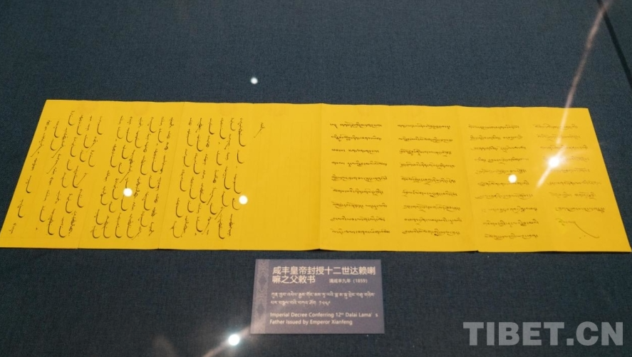 Das im Xizang-Museum aufbewahrte Ernennungsdokument von Kaiser Xianfeng für den Vater des 12. Dalai Lama (9. Jahr von Qing-Kaiser Xianfeng, 1859 n. Chr.)