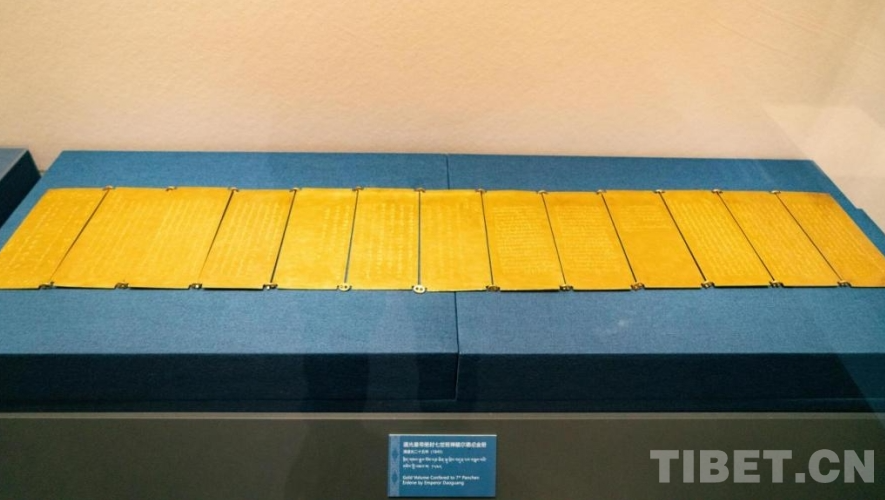 Das im Xizang-Museum aufbewahrte Goldene Heft zur Ernennung des 7. Panchen Rinpoche durch Kaiser Daoguang (25. Jahr der Amtszeit des Qing-Kaisers Daoguang, 1845 n. Chr.)