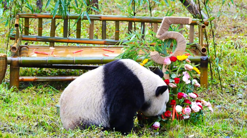 Der Qingling-Panda „Qin Hua“ hat am Samstag im Landschaftsgebiet des Huayang-Berges in der Stadt Hanzhong in der nordwestchinesischen Provinz Shaanxi seinen fünften Geburtstag gefeiert. Die Tierpfleger bereiteten eine spezielle Geburtstagstorte aus Bambus, Blumen und Karotten für ihn vor.