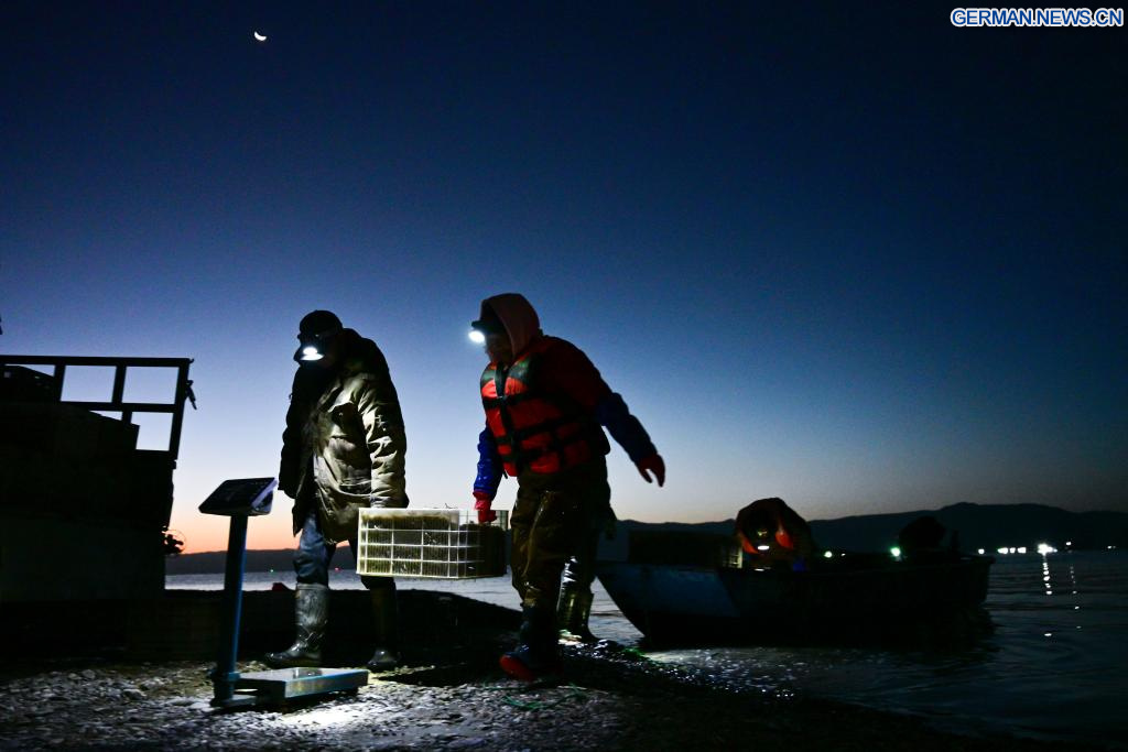 Jedes Jahr von Ende August bis Ende November sind die Fischer im Longyang-Schlucht-Gebiet mit dem Fang von Silberfischen beschäftigt.
