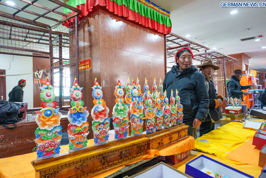 Die Skulpturen, die kunstvoll aus gefärbter Butter hergestellt werden, symbolisieren die guten Wünsche der Menschen für das neue Jahr.