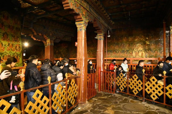 Obwohl das tibetische Feuer-Pferd-Neujahr bereits vorbei ist, setzt sich die festliche Stimmung in den Straßen und Gassen der alten Stadt Lhasa fort, und der Jokhang-Tempel erlebt eine neue Welle der Hochkonjunktur der Buddha-Verehrung. Am 14. März, nach dem Fest, war das Hochlandsomnenlicht mild, und Gläubige sowie Touristen aus verschiedenen Regionen Xizangs und anderen Landesteilen bildeten eine fließende Szenerie, in der sich Glaube und weltliches Leben auf der Barkhor-Straße vermischen.